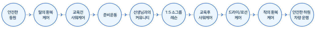 - 안전한 등원부터 준비 운동, 레슨, 하원까지 모든 걸 해결해 드립니다.